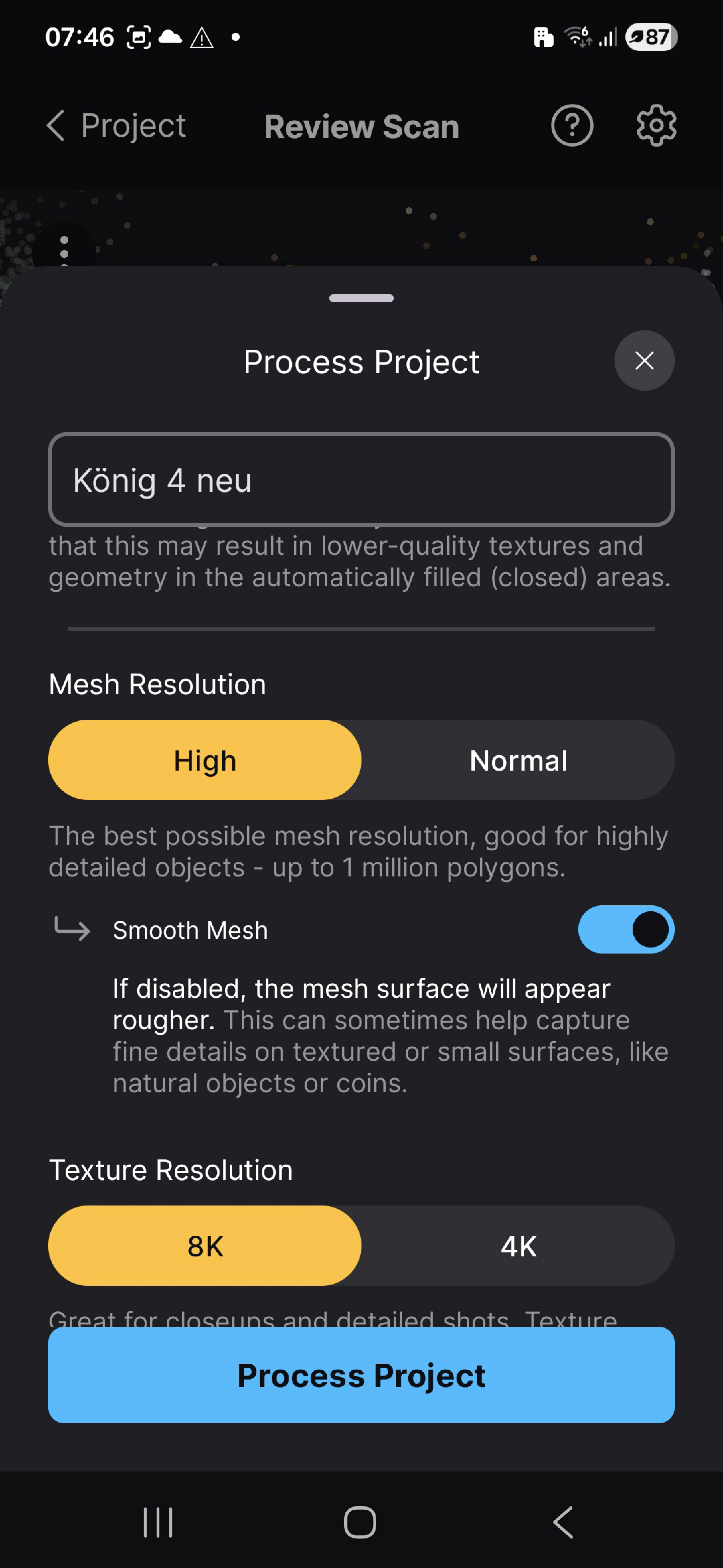 Workflow in Reality Scan